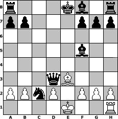 game notation in PGN-format [Event "Herbstgambit"] [Site "www.myChess.de"] [Date "2008.09.22"] [Round "1"] [White "Hobbykegler"] [Black "Naunhofer"] [ECO "D32"] [WhitemyELO "1128"] [BlackmyELO "1624"] [Result "0-1"] [TimeControl "10/2592000"] [WhiteDays "56"] [BlackDays "55"] [MyChessNo "48236"] 1. d4 d5 2. c4 e6 3. Nc3 c5 4. cxd5 cxd4 5. Qxd4 Nc6 6. e4 Nxd4 7. Be3 Nc2+ 8. Kd1 Nxa1 9. Nf3 exd5 10. exd5 Nf6 11. Bd3 Nxd5 12. Nxd5 Qxd5 13. Ne1 Bf5 14. Nc2 Qxd3+ 15. Ke1 Nxc2# 0-1 position notation in FEN-format r3kb1r/pp3ppp/8/5b2/8/3qB3/PPnP1PPP/4K2R - kq - 0 16 Captured white pieces: Captured black pieces: Click on a captured piece in order to display the desired move!