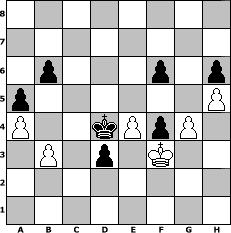 game notation in PGN-format [Event "Etwas Sizilianisch bitte??"] [Site "www.myChess.de"] [Date "2007.02.24"] [Round "1"] [White "hermtz"] [Black "Fighter"] [ECO "B20"] [WhitemyELO "1701"] [BlackmyELO "1680"] [Result "0-1"] [TimeControl "10/864000"] [WhiteDays "10"] [BlackDays "10"] [MyChessNo "32872"] 1. e4 c5 2. d4 cxd4 3. c3 Nf6 4. e5 Nd5 5. cxd4 d6 6. Nf3 Nc6 7. Bc4 Nb6 8. Bb3 dxe5 9. d5 Na5 10. Nc3 Nxb3 11. Qxb3 e6 12. O-O Nxd5 13. Nxd5 Qxd5 14. Qxd5 exd5 15. Nxe5 f6 16. Nd3 Bf5 17. Re1+ Kf7 18. Nf4 d4 19. Bd2 Rc8 20. Rac1 Bd6 21. h3 Rxc1 22. Rxc1 Re8 23. g4 Bd7 24. Nd3 Re2 25. Rd1 Bb5 26. Nc1 Re8 27. Nb3 Ba4 28. Kf1 g5 29. Re1 Bb5+ 30. Kg2 Rxe1 31. Bxe1 Be5 32. f3 b6 33. Nd2 Bf4 34. Ne4 Bd3 35. Bd2 Bxe4 36. Bxf4 gxf4 37. fxe4 Ke6 38. Kf3 Ke5 39. a4 a5 40. h4 h6 41. h5 d3 42. b3 Kd4 0-1 position notation in FEN-format 8/8/1p3p1p/p6P/P2kPpP1/1P1p1K2/8/8 - - - 1 43 Captured white pieces: Captured black pieces: Click on a captured piece in order to display the desired move!