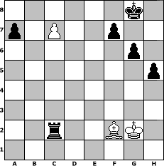 game notation in PGN-format [Event "unter uns Nr. 17"] [Site "www.myChess.de"] [Date "2014.02.13"] [Round "1"] [White "MiFie"] [Black "beowulf"] [ECO "B30"] [WhitemyELO "1072"] [BlackmyELO "1350"] [Result "0-1"] [TimeControl "10/864000"] [WhiteDays "50"] [BlackDays "48"] [MyChessNo "92909"] 1. e4 c5 2. Nf3 Nc6 3. Bc4 e6 4. O-O Nge7 5. d3 d5 6. Bb3 g6 7. c3 Bg7 8. Bg5 dxe4 9. dxe4 O-O 10. Nbd2 Qc7 11. Nc4 b5 12. Nce5 c4 13. Nxc4 bxc4 14. Bxc4 Bb7 15. h3 Ne5 16. Nxe5 Bxe5 17. g3 Bxe4 18. Qg4 Bf5 19. Qe2 Bxh3 20. Rfd1 Bxg3 21. Qf3 Bh2+ 22. Kh1 Qxc4 23. Qxh3 Bf4 24. Bxe7 Qe4+ 25. f3 Qe2 26. Rab1 Rfe8 27. Bf6 e5 28. Re1 Qc4 29. Re4 Qd3 30. Rxf4 Qxb1+ 31. Kg2 h5 32. Rg4 Qf5 33. Qh4 Re6 34. f4 exf4 35. Rxf4 Qc2+ 36. Qf2 Qxf2+ 37. Rxf2 Rae8 38. Bh4 Re2 39. c4 Rxf2+ 40. Bxf2 Re2 41. c5 Rxb2 42. c6 Rxa2 43. c7 Rc2 0-1 position notation in FEN-format 6k1/p1P2p2/6p1/7p/8/8/2r2BK1/8 - - - 1 44 Captured white pieces: Captured black pieces: Click on a captured piece in order to display the desired move!