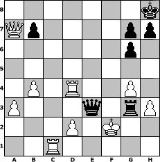 game notation in PGN-format [Event "RLT Robur +/-100"] [Site "www.myChess.de"] [Date "2005.03.25"] [Round "1"] [White "Zoltan"] [Black "winnie"] [ECO "D37"] [WhitemyELO "1693"] [BlackmyELO "1724"] [Result "0-1"] [TimeControl "10/2592000"] [WhiteDays "56"] [BlackDays "42"] [MyChessNo "11490"] 1. d4 d5 2. c4 e6 3. Nc3 Nf6 4. Nf3 Be7 5. Bf4 O-O 6. e3 c5 7. dxc5 Bxc5 8. cxd5 Nxd5 9. Nxd5 exd5 10. a3 Nc6 11. Bd3 Bb6 12. O-O Bg4 13. h3 Bh5 14. b4 Bc7 15. Bxc7 Qxc7 16. g4 Bg6 17. Bxg6 fxg6 18. Qxd5+ Kh8 19. Nd4 Nxd4 20. Qxd4 Rad8 21. Qxa7 Rf3 22. Rac1 Qe7 23. Rfd1 Rdf8 24. Rd4 Rg3+ 25. Kf1 Rxf2+ 26. Kxf2 Qxe3+ 0-1 position notation in FEN-format 7k/Qp4pp/6p1/8/1P1R2P1/P3q1rP/3P1K2/2R5 - - - 0 27 Captured white pieces: Captured black pieces: Click on a captured piece in order to display the desired move!