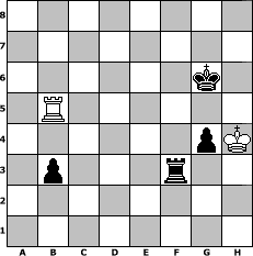 game notation in PGN-format [Event "Cafehausturnier f"] [Site "www.myChess.de"] [Date "2009.05.12"] [Round "1"] [White "faustballer"] [Black "Seneca"] [ECO "A57"] [WhitemyELO "1437"] [BlackmyELO "1438"] [Result "1/2-1/2"] [TimeControl "10/864000"] [WhiteDays "10"] [BlackDays "09"] [MyChessNo "55648"] 1. d4 Nf6 2. c4 c5 3. d5 b5 4. cxb5 a6 5. Nc3 axb5 6. e4 b4 7. Nb5 d6 8. Bc4 g6 9. Bd2 Nxe4 10. Qe2 Nxd2 11. Qxd2 Bg7 12. Qe2 O-O 13. h3 Nd7 14. Nf3 Ne5 15. Nxe5 Bxe5 16. O-O Bd7 17. a3 bxa3 18. Nxa3 Qb6 19. Rab1 Bf5 20. Bd3 Bxd3 21. Qxd3 Ra4 22. Nc4 Qa6 23. Nxe5 dxe5 24. Qxa6 Rxa6 25. Rfc1 Ra5 26. Rd1 f6 27. d6 exd6 28. Rxd6 Rb5 29. Rd5 Rf7 30. b4 Rc7 31. Kh2 Rxb4 32. Rxb4 cxb4 33. Rb5 Rc4 34. g3 Kg7 35. h4 Kh6 36. Kh3 g5 37. hxg5+ Kxg5 38. f3 h5 39. f4+ Kg6 40. fxe5 fxe5 41. Rxe5 b3 42. Rb5 Rc3 43. Kh4 Rf3 44. g4 hxg4 1/2-1/2 position notation in FEN-format 8/8/6k1/1R6/6pK/1p3r2/8/8 - - - 0 45 Captured white pieces: Captured black pieces: Click on a captured piece in order to display the desired move!