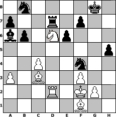 game notation in PGN-format [Event "Ferienspass"] [Site "www.myChess.de"] [Date "2016.07.25"] [Round "1"] [White "HenrySchinasky"] [Black "Cuibono"] [ECO "D15"] [WhitemyELO "2080"] [BlackmyELO "2085"] [Result "1/2-1/2"] [TimeControl "10/864000"] [WhiteDays "09"] [BlackDays "07"] [MyChessNo "104300"] 1. d4 d5 2. c4 c6 3. Nf3 Nf6 4. Nc3 e6 5. Bg5 Nbd7 6. e3 Qa5 7. cxd5 Nxd5 8. Qd2 Bb4 9. Rc1 h6 10. Bh4 c5 11. Bd3 cxd4 12. exd4 O-O 13. O-O b6 14. a3 Bxc3 15. bxc3 Bb7 16. Rfe1 Rac8 17. c4 Qxd2 18. Nxd2 Nf4 19. Bf1 g5 20. Bg3 Rfd8 21. f3 Nb8 22. Bf2 Kg7 23. Nb3 Bc6 24. Nd2 Bb7 25. Rcd1 Ba6 26. h4 gxh4 27. Bxh4 Rxd4 28. Ne4 Rxd1 29. Rxd1 Kg8 30. Bf6 Nh5 31. Nd6 Rc7 32. Bc3 Rd7 33. Kf2 Nf4 34. Rd2 h5 1/2-1/2 position notation in FEN-format 1n4k1/p2r1p2/bp1Np3/7p/2P2n2/P1B2P2/3R1KP1/5B2 - - - 0 35 Captured white pieces: Captured black pieces: Click on a captured piece in order to display the desired move!