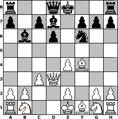 game notation in PGN-format [Event "Summer Games 2021"] [Site "www.myChess.de"] [Date "2021.08.01"] [Round "1"] [White "martinus"] [Black "wolni55"] [ECO "C33"] [WhitemyELO "1479"] [BlackmyELO "1348"] [Result "1-0"] [TimeControl "10/86400"] [WhiteDays "01"] [BlackDays "00"] [MyChessNo "122666"] 1. e4 e5 2. f4 exf4 3. d4 Bb4+ 4. c3 Ba5 5. Bxf4 d6 6. Qa4+ Nc6 7. d5 Bb6 8. dxc6 bxc6 9. Qxc6+ Bd7 10. Qd5 Nf6 11. Qd3 1-0 position notation in FEN-format r2qk2r/p1pb1ppp/1b1p1n2/8/4PB2/2PQ4/PP2P1PP/RN2KBNR - KQkq - 4 11 Captured white pieces: Captured black pieces: Click on a captured piece in order to display the desired move!
