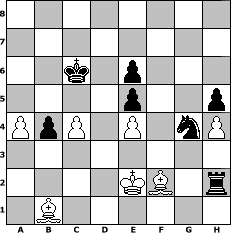 game notation in PGN-format [Event "French Open"] [Site "www.myChess.de"] [Date "2007.06.02"] [Round "2"] [White "Andylein1989"] [Black "Grubengeist"] [ECO "B32"] [WhitemyELO "1546"] [BlackmyELO "1557"] [Result "0-1"] [TimeControl "10/864000"] [WhiteDays "41"] [BlackDays "50"] [MyChessNo "35384"] 1. e4 c5 2. Nf3 Nc6 3. d4 cxd4 4. Nxd4 b6 5. Nxc6 dxc6 6. Qxd8+ Kxd8 7. Bc4 e6 8. Bf4 Nf6 9. Nc3 Bc5 10. O-O-O+ Ke7 11. f3 b5 12. Bb3 a5 13. a3 a4 14. Ba2 Ba6 15. Bg5 e5 16. Rd2 h6 17. Bh4 Be3 18. Rhd1 Rad8 19. b3 axb3 20. cxb3 Rxd2 21. Rxd2 Rd8 22. Be1 Bc8 23. Kc2 Bxd2 24. Bxd2 Be6 25. a4 b4 26. Ne2 c5 27. Be3 Kd7 28. Ng3 Kc6 29. h4 Nd7 30. Nh5 g6 31. Ng7 h5 32. Nxe6 fxe6 33. g4 Rf8 34. Kd2 Rxf3 35. gxh5 gxh5 36. Ke2 Rh3 37. Bf2 Rh1 38. Be1 Rh2+ 39. Bf2 Nf6 40. Bb1 c4 41. bxc4 Ng4 0-1 position notation in FEN-format 8/8/2k1p3/4p2p/PpP1P1nP/8/4KB1r/1B6 - - - 1 42 Captured white pieces: Captured black pieces: Click on a captured piece in order to display the desired move!