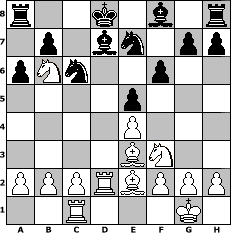 game notation in PGN-format [Event "Jahreswechsel 2016/17"] [Site "www.myChess.de"] [Date "2016.12.03"] [Round "1"] [White "MiLi"] [Black "FrankB"] [ECO "A13"] [WhitemyELO "1501"] [BlackmyELO "1686"] [Result "1-0"] [TimeControl "10/3456000"] [WhiteDays "34"] [BlackDays "32"] [MyChessNo "105928"] 1. c4 e6 2. d4 Nf6 3. Nf3 d5 4. Nc3 c5 5. cxd5 Nxd5 6. e4 cxd4 7. Qxd4 Nc6 8. Bb5 Ndb4 9. Qxd8+ Kxd8 10. O-O Bd7 11. Bf4 f6 12. Rfd1 e5 13. Rd2 Kc7 14. Be3 a6 15. Be2 Ne7 16. Rc1 Nbc6 17. Nd5+ Kd8 18. Nb6 1-0 position notation in FEN-format r2k1b1r/1p1bn1pp/pNn2p2/4p3/4P3/4BN2/PPPRBPPP/2R3K1 - - - 7 18 Captured white pieces: ![]() ![]() ![]() ![]() ![]() ![]() ![]() ![]() ![]() ![]() ![]() ![]() ![]() ![]() ![]() Captured black pieces: ![]() ![]() ![]() ![]() ![]() ![]() ![]() ![]() ![]() ![]() ![]() ![]() ![]() ![]() ![]() Click on a captured piece in order to display the desired move!