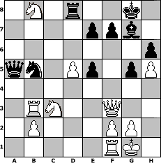 game notation in PGN-format [Event "Oktober Gold"] [Site "www.myChess.de"] [Date "2025.10.11"] [Round "1"] [White "Leon"] [Black "alibengali"] [ECO "A57"] [WhitemyELO "2089"] [BlackmyELO "1715"] [Result "1-0"] [TimeControl "10/1728000"] [WhiteDays "58"] [BlackDays "28"] [MyChessNo "133724"] 1. d4 Nf6 2. c4 c5 3. d5 b5 4. cxb5 a6 5. e3 g6 6. Nc3 Bg7 7. e4 O-O 8. a4 Bb7 9. Bg5 h6 10. Bxf6 Bxf6 11. Nf3 Qa5 12. Ra3 d6 13. Be2 Nd7 14. O-O axb5 15. Bxb5 Nb6 16. h4 Ba6 17. e5 dxe5 18. h5 g5 19. Nd2 Rfd8 20. Nde4 Bg7 21. Qf3 Nc4 22. Rb3 Nd6 23. Nxc5 Bxb5 24. axb5 Rab8 25. Na6 Nxb5 26. Nxb8 1-0 position notation in FEN-format 1N1r2k1/4ppb1/7p/qn1Pp1pP/8/1RN2Q2/1P3PP1/5RK1 - - - 0 26 Captured white pieces: Captured black pieces: Click on a captured piece in order to display the desired move!