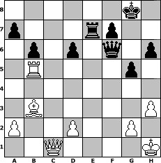 game notation in PGN-format [Event "Februar 2018"] [Site "www.myChess.de"] [Date "2018.02.03"] [Round "1"] [White "reisinger"] [Black "Knight"] [ECO "D20"] [WhitemyELO "1456"] [BlackmyELO "1091"] [Result "1-0"] [TimeControl "10/1728000"] [WhiteDays "60"] [BlackDays "60"] [MyChessNo "111284"] 1. d4 d5 2. c4 dxc4 3. Nc3 Nf6 4. e4 e6 5. Bxc4 Nc6 6. d5 exd5 7. exd5 Ne5 8. Bb3 Bb4 9. Nge2 Bxc3+ 10. Nxc3 O-O 11. O-O Re8 12. Bg5 h6 13. Bh4 Bd7 14. Ne4 g5 15. Bg3 Nxe4 16. Bxe5 Rxe5 17. Qh5 Qf6 18. Qd1 Bb5 19. Re1 Qxf2+ 20. Kh1 Rd8 21. d6 cxd6 22. Rc1 Qxb2 23. Rc2 Nf2+ 24. Rxf2 Qxf2 25. Rxe5 Qf6 26. Rxb5 b6 27. h3 Rd7 28. Qe1 Re7 29. Qc1 1-0 position notation in FEN-format 6k1/p3rp2/1p1p1q1p/1R4p1/8/1B5P/P2P2P1/2Q4K - - - 4 29 Captured white pieces: Captured black pieces: Click on a captured piece in order to display the desired move!