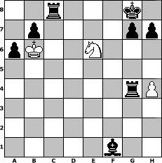 game notation in PGN-format [Event "Schinderhannes-Cup 2"] [Site "www.myChess.de"] [Date "2012.07.30"] [Round "1"] [Board "4"] [White "Hobbykegler"] [Black "reisinger"] [ECO "A13"] [WhitemyELO "1099"] [BlackmyELO "1462"] [Result "0-1"] [TimeControl "10/2592000"] [WhiteDays "094"] [BlackDays "120"] [MyChessNo "83017"] 1. c4 e6 2. b3 d5 3. Nc3 Nf6 4. Bb2 d4 5. Nb5 Nc6 6. Qc2 a6 7. Na3 Nb4 8. Qb1 d3 9. exd3 Nxd3+ 10. Bxd3 Bc5 11. Nf3 Qd6 12. Nc2 Ng4 13. Bd4 Bxd4 14. Nfxd4 c5 15. Nf3 Qxd3 16. a4 O-O 17. Ra3 Rd8 18. Qd1 e5 19. b4 Qxc4 20. Rc3 Qe4+ 21. Qe2 Qxe2+ 22. Kxe2 cxb4 23. Rc7 e4 24. Ng5 Nxf2 25. Kxf2 Rxd2+ 26. Ke3 Rxg2 27. Rxf7 Rxg5 28. Nxb4 Kxf7 29. Rf1+ Kg8 30. Kxe4 Bd7 31. Nd5 Re8+ 32. Kd4 Bxa4 33. h4 Rg4+ 34. Kc5 Bc6 35. Nc7 Rc8 36. Ne6 Bb5+ 37. Kb6 Bxf1 0-1 position notation in FEN-format 2r3k1/1p4pp/pK2N3/8/6rP/8/8/5b2 - - - 0 38 Captured white pieces: Captured black pieces: Click on a captured piece in order to display the desired move!