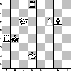 game notation in PGN-format [Event "around 1510"] [Site "www.myChess.de"] [Date "2005.03.07"] [Round "1"] [White "Festungsschach"] [Black "rikilatic"] [ECO "C40"] [WhitemyELO "1579"] [BlackmyELO "1497"] [Result "1-0"] [TimeControl "10/864000"] [WhiteDays "10"] [BlackDays "00"] [MyChessNo "10945"] 1. e4 e5 2. Nf3 Qf6 3. d4 Nc6 4. c3 exd4 5. Bg5 Qg6 6. Bd3 Ne5 7. Nxe5 Qxg5 8. cxd4 Qxg2 9. Rf1 Nf6 10. Nd2 Qxh2 11. Qb3 Qh5 12. Be2 Qh4 13. Qxf7+ Kd8 14. Nef3 Qf4 15. e5 Nd5 16. Qxd5 c6 17. Qc4 g5 18. a3 d6 19. Rg1 h6 20. d5 Qxc4 21. Bxc4 g4 22. Nh4 dxe5 23. Ng6 Rg8 24. Nxe5 h5 25. dxc6 Rg7 26. Rh1 Re7 27. Rxh5 Bg7 28. O-O-O Rxe5 29. Nf3+ Kc7 30. Nxe5 Bxe5 31. Rxe5 bxc6 32. Re7+ Kb6 33. Rd8 Bb7 34. Rcxa8 Bxa8 35. Re4 c5 36. Rxg4 Bf3 37. Rg3 Bb7 38. b4 cxb4 39. axb4 a6 40. f4 Be4 41. Ra3 Bb7 42. f5 Be4 43. f6 Bg6 44. Rxa6+ Kb7 45. b5 Bh5 46. Kd2 Bg6 47. Bd5+ Kc7 48. b6+ Kd6 49. b7+ Kxd5 50. b8=Q Kc5 51. Qc7+ Kb5 52. Qc6+ Kb4 53. Ra4+ 1-0 position notation in FEN-format 3R4/8/2Q2Pb1/8/Rk6/8/3K4/8 - - - 6 53 Captured white pieces: Captured black pieces: Click on a captured piece in order to display the desired move!