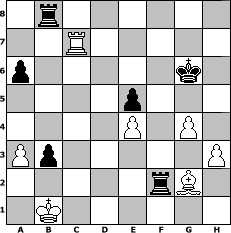 game notation in PGN-format [Event "Schach bei einem Schoppen Wein"] [Site "www.myChess.de"] [Date "2012.02.06"] [Round "1"] [White "espero"] [Black "woern63"] [ECO "A80"] [WhitemyELO "1739"] [BlackmyELO "1897"] [Result "0-1"] [TimeControl "10/1728000"] [WhiteDays "20"] [BlackDays "19"] [MyChessNo "79741"] 1. d4 f5 2. h3 g6 3. g4 e6 4. c4 Bg7 5. Nc3 d6 6. Bg2 Ne7 7. Nf3 O-O 8. Bg5 h6 9. Bxe7 Qxe7 10. Qd2 Nc6 11. O-O-O a6 12. e4 fxe4 13. Nxe4 b5 14. d5 Ne5 15. Nxe5 Bxe5 16. Kb1 bxc4 17. Qxh6 Rb8 18. Qxg6+ Qg7 19. Qxg7+ Kxg7 20. b3 cxb3 21. a3 exd5 22. Rxd5 Bb7 23. Rxe5 dxe5 24. Rc1 Rf4 25. Rxc7+ Kg6 26. f3 Bxe4+ 27. fxe4 Rf2 0-1 position notation in FEN-format 1r6/2R5/p5k1/4p3/4P1P1/Pp5P/5rB1/1K6 - - - 1 28 Captured white pieces: Captured black pieces: Click on a captured piece in order to display the desired move!