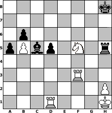 game notation in PGN-format [Event "reisinger"] [Site "www.myChess.de"] [Date "2010.08.09"] [Round "1"] [White "neve"] [Black "reisinger"] [ECO "A92"] [WhitemyELO "1510"] [BlackmyELO "1547"] [Result "1-0"] [TimeControl "10/1728000"] [WhiteDays "20"] [BlackDays "20"] [MyChessNo "67543"] 1. d4 f5 2. c4 Nf6 3. g3 e6 4. Bg2 Be7 5. Nf3 O-O 6. O-O Ne4 7. Nfd2 Nc6 8. Nxe4 fxe4 9. Bxe4 d5 10. Bd3 b6 11. e3 Bb7 12. Qc2 dxc4 13. Bxc4 Qd7 14. a3 Kh8 15. b4 Rf4 16. gxf4 e5 17. f3 exd4 18. e4 a6 19. Bd5 Rf8 20. f5 Rf6 21. Bg5 Rd6 22. Bf4 Rf6 23. Rf2 Bd6 24. Bg5 Rf8 25. Nd2 Qe8 26. f4 h6 27. Bh4 a5 28. b5 Nd8 29. Bxd8 Bxd5 30. exd5 Qxd8 31. Nc4 Bc5 32. Qd3 Qd7 33. Ne5 Qxf5 34. Qxf5 Rxf5 35. Kh1 Bd6 36. Kg2 g5 37. Rd1 gxf4 38. Nc4 Bc5 39. d6 cxd6 40. Rdf1 d5 41. Nd2 Bd6 42. a4 Rg5+ 43. Kh1 Rg4 44. Nb3 Rh4 45. Nxd4 Bc5 46. Rxf4 Rh3 47. R4f3 Rh4 48. Nf5 Rxa4 49. Nxh6 Rh4 50. Nf5 Rh5 51. Rd1 1-0 position notation in FEN-format 7k/8/1p6/pPbp1N1r/8/5R2/7P/3R3K - - - 4 51 Captured white pieces: Captured black pieces: Click on a captured piece in order to display the desired move!