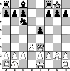 game notation in PGN-format [Event "K"] [Site "www.myChess.de"] [Date "2004.04.28"] [Round "1"] [White "doctordot2004"] [Black "Knight"] [ECO "C57"] [WhitemyELO "1487"] [BlackmyELO "1478"] [Result "1-0"] [TimeControl "10/3456000"] [WhiteDays "80"] [BlackDays "80"] [MyChessNo "4212"] 1. e4 e5 2. Nf3 Nc6 3. Bc4 Nf6 4. Ng5 d5 5. exd5 Nxd5 6. d3 Be7 7. Qf3 Bxg5 8. Bxd5 O-O 9. Bxg5 Qxg5 10. Qe3 Qxg2 11. Bxg2 1-0 position notation in FEN-format r1b2rk1/ppp2ppp/2n5/4p3/8/3PQ3/PPP1PPBP/RN2K2R - KQ - 0 11 Captured white pieces: ![]() ![]() ![]() ![]() ![]() ![]() ![]() ![]() ![]() ![]() ![]() ![]() ![]() ![]() ![]() Captured black pieces: ![]() ![]() ![]() ![]() ![]() ![]() ![]() ![]() ![]() ![]() ![]() ![]() ![]() ![]() ![]() Click on a captured piece in order to display the desired move!