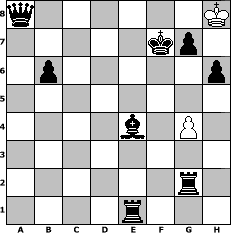 game notation in PGN-format [Event "Herbst 2018"] [Site "www.myChess.de"] [Date "2018.10.15"] [Round "1"] [White "augustus"] [Black "MiFie"] [ECO "D01"] [WhitemyELO "1077"] [BlackmyELO "1104"] [Result "0-1"] [TimeControl "10/2592000"] [WhiteDays "070"] [BlackDays "114"] [MyChessNo "113249"] 1. d4 d5 2. Nc3 Nf6 3. f3 Nc6 4. e3 e6 5. a3 Bd6 6. Bd3 O-O 7. f4 h6 8. Nf3 a6 9. O-O Bd7 10. b4 b6 11. Bd2 a5 12. b5 Na7 13. a4 c6 14. e4 dxe4 15. Bxe4 cxb5 16. Be3 Nxe4 17. Nxe4 bxa4 18. Nxd6 Nc8 19. Nxc8 Rxc8 20. Nh4 Rc3 21. Qe2 Qxh4 22. h3 Rfc8 23. Rxa4 Bxa4 24. Qg4 Qxg4 25. hxg4 Rxe3 26. f5 Rxc2 27. fxe6 Bc6 28. exf7+ Kf8 29. Rf2 Re1+ 30. Kh2 Rxf2 31. Kg3 Rxg2+ 32. Kf4 a4 33. Kf5 a3 34. Kg6 a2 35. Kh7 a1=Q 36. Kh8 Qa8 37. d5 Bxd5 38. Kh7 Be4+ 39. Kh8 Kxf7# 0-1 position notation in FEN-format q6K/5kp1/1p5p/8/4b1P1/8/6r1/4r3 - - - 0 40 Captured white pieces: ![]() ![]() ![]() ![]() ![]() ![]() ![]() ![]() ![]() ![]() ![]() ![]() ![]() ![]() ![]() Captured black pieces: ![]() ![]() ![]() ![]() ![]() ![]() ![]() ![]() ![]() ![]() ![]() ![]() ![]() ![]() ![]() Click on a captured piece in order to display the desired move!
