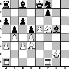game notation in PGN-format [Event "Summer Games 2021"] [Site "www.myChess.de"] [Date "2021.08.01"] [Round "1"] [White "Haneken"] [Black "Master1"] [ECO "B12"] [WhitemyELO "1116"] [BlackmyELO "1333"] [Result "0-1"] [TimeControl "10/86400"] [WhiteDays "00"] [BlackDays "01"] [MyChessNo "122673"] 1. e4 c6 2. d4 d5 3. e5 e6 4. Bd3 Ne7 5. Nf3 a6 6. h3 h6 7. O-O Nf5 8. Nc3 Bb4 9. a3 Ba5 10. h4 O-O 11. g4 Nxh4 12. b4 Nxf3+ 13. Qxf3 Bc7 14. Qh3 b5 15. Bxh6 g6 16. Bxf8 Qxf8 17. Ne2 Qg7 18. Nf4 Bd8 19. c3 Bg5 20. Ne2 Nd7 21. f3 Kf8 22. f4 Be7 23. Kg2 Ke8 24. Qg3 Nf8 25. f5 gxf5 26. gxf5 Qxg3+ 27. Nxg3 exf5 28. Nxf5 Bg5 0-1 position notation in FEN-format r1b1kn2/5p2/p1p5/1p1pPNb1/1P1P4/P1PB4/6K1/R4R2 - - - 1 29 Captured white pieces: Captured black pieces: Click on a captured piece in order to display the desired move!
