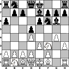 game notation in PGN-format [Event "Mal verliert man, mal gewinnen die anderen"] [Site "www.myChess.de"] [Date "2010.04.17"] [Round "1"] [White "micha62"] [Black "Erich"] [ECO "A00"] [WhitemyELO "1438"] [BlackmyELO "1810"] [Result "0-1"] [TimeControl "10/864000"] [WhiteDays "00"] [BlackDays "10"] [MyChessNo "64866"] 1. d3 d5 2. d4 Nf6 3. e3 Bf5 4. Nf3 e6 5. g3 Be7 6. h3 a6 7. g4 Bg6 0-1 position notation in FEN-format rn1qk2r/1pp1bppp/p3pnb1/3p4/3P2P1/4PN1P/PPPP1P2/RNBQKB1R - KQkq - 1 8 Captured white pieces: Captured black pieces: Click on a captured piece in order to display the desired move!