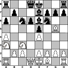 game notation in PGN-format [Event "Sweschnikow II"] [Site "www.myChess.de"] [Date "2012.04.28"] [Round "2"] [White "muellerh"] [Black "brucybabe"] [ECO "B33"] [WhitemyELO "1429"] [BlackmyELO "1649"] [Result "0-1"] [TimeControl "10/1728000"] [WhiteDays "00"] [BlackDays "14"] [MyChessNo "81318"] 1. e4 c5 2. Nf3 Nc6 3. d4 cxd4 4. Nxd4 Nf6 5. Nc3 e5 6. Ndb5 d6 7. a4 a6 8. Na3 Be6 9. Bg5 Be7 0-1 position notation in FEN-format r2qk2r/1p2bppp/p1npbn2/4p1B1/P3P3/N1N5/1PP1PPPP/R2QKB1R - KQkq - 4 10 Captured white pieces: Captured black pieces: Click on a captured piece in order to display the desired move!