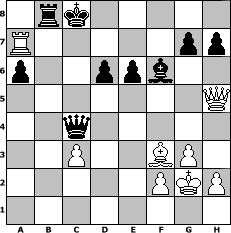 game notation in PGN-format [Event "Bremer Schl"] [Site "www.myChess.de"] [Date "2008.11.01"] [Round "1"] [White "Dragonwolves"] [Black "martinus"] [ECO "B32"] [WhitemyELO "2163"] [BlackmyELO "1928"] [Result "1-0"] [TimeControl "10/2592000"] [WhiteDays "103"] [BlackDays "110"] [MyChessNo "49394"] 1. e4 c5 2. Nf3 Nc6 3. d4 cxd4 4. Nxd4 e5 5. Nb5 d6 6. Be3 a6 7. N5c3 Nf6 8. Be2 Be7 9. O-O O-O 10. Bf3 b5 11. Nd5 Nxd5 12. Qxd5 Qc7 13. Qd2 Be6 14. Nc3 Bf6 15. a4 Nd4 16. Bxd4 exd4 17. Ne2 Rab8 18. Nxd4 bxa4 19. Nxe6 fxe6 20. c3 Qb6 21. Rfb1 Rfc8 22. g3 Rc5 23. Kg2 Be5 24. Bg4 Kf7 25. Rxa4 Rxc3 26. bxc3 Qxb1 27. Rc4 Ke7 28. Rc7+ Kd8 29. Ra7 Qxe4+ 30. Bf3 Qc4 31. Qg5+ Bf6 32. Qa5+ Kc8 33. Qh5 1-0 position notation in FEN-format 1rk5/R5pp/p2ppb2/7Q/2q5/2P2BP1/5PKP/8 - - - 7 33 Captured white pieces: ![]() ![]() ![]() ![]() ![]() ![]() ![]() ![]() ![]() ![]() ![]() ![]() ![]() ![]() ![]() Captured black pieces: ![]() ![]() ![]() ![]() ![]() ![]() ![]() ![]() ![]() ![]() ![]() ![]() ![]() ![]() ![]() Click on a captured piece in order to display the desired move!