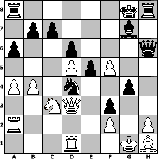 game notation in PGN-format [Event "André Chéron - 30. Todestag"] [Site "www.myChess.de"] [Date "2010.09.12"] [Round "1"] [White "sprinterde"] [Black "woern63"] [ECO "A04"] [WhitemyELO "1506"] [BlackmyELO "1644"] [Result "0-1"] [TimeControl "10/1728000"] [WhiteDays "79"] [BlackDays "80"] [MyChessNo "68269"] 1. Nf3 f5 2. g3 g6 3. Bg2 Nf6 4. d4 d6 5. Nc3 Bg7 6. O-O O-O 7. Qd3 Nc6 8. Bg5 e6 9. a3 h6 10. Bxf6 Qxf6 11. e3 e5 12. Qc4+ Kh7 13. d5 Qf7 14. e4 f4 15. Nb5 a6 16. Nc3 Nd4 17. Nd2 f3 18. Bh1 Nxc2 19. Rac1 Nd4 20. Qd3 g5 21. Rfe1 g4 22. a4 h5 23. Ra1 h4 24. Nf1 hxg3 25. Nxg3 Bd7 26. b4 Qg6 27. Ra2 Qh6 28. Rd1 Rh8 29. Nf5 Bxf5 30. exf5 Kg8 0-1 position notation in FEN-format r5kr/1pp3b1/p2p3q/3PpP2/PP1n2p1/2NQ1p2/R4P1P/3R2KB - - - 1 31 Captured white pieces: Captured black pieces: Click on a captured piece in order to display the desired move!