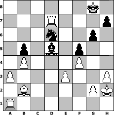 game notation in PGN-format [Event "Bei der Hitze gehe ich nicht raus"] [Site "www.myChess.de"] [Date "2022.07.22"] [Round "1"] [White "Master1"] [Black "skuehnel"] [ECO "D00"] [WhitemyELO "1371"] [BlackmyELO "1307"] [Result "1-0"] [TimeControl "10/2592000"] [WhiteDays "106"] [BlackDays "093"] [MyChessNo "126539"] 1. d4 d5 2. e3 f5 3. Bd3 Nc6 4. Nf3 e6 5. Nbd2 g6 6. O-O Bd6 7. Re1 Nf6 8. a3 O-O 9. h3 e5 10. dxe5 Nxe5 11. Nxe5 Bxe5 12. Nf3 Re8 13. Nxe5 Rxe5 14. f4 Re6 15. c4 dxc4 16. Bxc4 Qxd1 17. Rxd1 Ne4 18. Rd8+ Kg7 19. Bxe6 Bxe6 20. Rxa8 a6 21. Re8 Bf7 22. Re7 Kf6 23. Rxc7 b5 24. Rc6+ Be6 25. Rxa6 Nc5 26. Rc6 Ne4 27. Kh2 Kf7 28. b4 Bd5 29. Rc7+ Kg8 30. Bb2 Nd6 31. Rd7 1-0 position notation in FEN-format 6k1/3R3p/3n2p1/1p1b1p2/1P3P2/P3P2P/1B4PK/R7 - - - 6 31 Captured white pieces: Captured black pieces: Click on a captured piece in order to display the desired move!