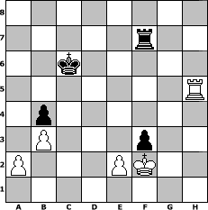 game notation in PGN-format [Event "Sommer 2025_1"] [Site "www.myChess.de"] [Date "2025.06.20"] [Round "1"] [White "alibengali"] [Black "kalle"] [ECO "B75"] [WhitemyELO "1740"] [BlackmyELO "1651"] [Result "1/2-1/2"] [TimeControl "10/1728000"] [WhiteDays "119"] [BlackDays "085"] [MyChessNo "133451"] 1. e4 c5 2. Nf3 d6 3. d4 cxd4 4. Nxd4 Nf6 5. Nc3 g6 6. Be3 Bg7 7. f3 Nc6 8. Qd2 O-O 9. Bc4 Bd7 10. O-O-O Rc8 11. Bb3 Ne5 12. Kb1 Nc4 13. Bxc4 Rxc4 14. g4 a6 15. h4 b5 16. h5 b4 17. Nd5 Nxd5 18. exd5 a5 19. hxg6 fxg6 20. Qh2 Kf7 21. Bh6 Rh8 22. Ne6 Bxe6 23. dxe6+ Kg8 24. Bxg7 Kxg7 25. Qh6+ Kg8 26. b3 Rc3 27. Qf4 Qf8 28. Qxf8+ Kxf8 29. f4 Kg7 30. f5 gxf5 31. gxf5 Kf6 32. Rd5 Rc5 33. Rxc5 dxc5 34. Rh5 h6 35. Kb2 Rc8 36. c3 Ke5 37. Kc2 Kf4 38. f6 exf6 39. Rxh6 Kf5 40. e7 Ke6 41. Rh5 Kxe7 42. Rh7+ Ke6 43. Ra7 f5 44. Rxa5 f4 45. Ra6+ Ke5 46. cxb4 cxb4+ 47. Kd2 f3 48. Ke3 Rf8 49. Ra5+ Kd6 50. Kf2 Kc6 51. Rh5 Rf7 1/2-1/2 position notation in FEN-format 8/5r2/2k5/7R/1p6/1P3p2/P3PK2/8 - - - 8 52 Captured white pieces: Captured black pieces: Click on a captured piece in order to display the desired move!
