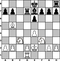 game notation in PGN-format [Event "Ein Turnier, ein Turnier! Oma wir danken dir!"] [Site "www.myChess.de"] [Date "2010.08.04"] [Round "1"] [White "Arijan"] [Black "beowulf"] [ECO "D10"] [WhitemyELO "1471"] [BlackmyELO "1411"] [Result "1-0"] [TimeControl "10/864000"] [WhiteDays "20"] [BlackDays "18"] [MyChessNo "67479"] 1. d4 d5 2. c4 c6 3. Nc3 Nf6 4. cxd5 cxd5 5. f3 Bf5 6. Bg5 e6 7. e4 dxe4 8. fxe4 Bg4 9. Bxf6 Qxf6 10. Qxg4 Qxd4 11. Bb5+ Nd7 12. Rd1 Qe3+ 13. Qe2 Qxe2+ 14. Kxe2 Rd8 15. Nf3 Be7 16. Rxd7 Rxd7 17. Rd1 1-0 position notation in FEN-format 4k2r/pp1rbppp/4p3/1B6/4P3/2N2N2/PP1PK1PP/3R4 - k - 1 17 Captured white pieces: ![]() ![]() ![]() ![]() ![]() ![]() ![]() ![]() ![]() ![]() ![]() ![]() ![]() ![]() ![]() Captured black pieces: ![]() ![]() ![]() ![]() ![]() ![]() ![]() ![]() ![]() ![]() ![]() ![]() ![]() ![]() ![]() Click on a captured piece in order to display the desired move!