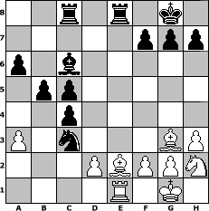 game notation in PGN-format [Event "Herbstturnier 2025"] [Site "www.myChess.de"] [Date "2025.09.16"] [Round "1"] [White "Jonas84"] [Black "deepsabel"] [ECO "D30"] [WhitemyELO "1531"] [BlackmyELO "1798"] [Result "0-1"] [TimeControl "10/1728000"] [WhiteDays "59"] [BlackDays "55"] [MyChessNo "133663"] 1. d4 d5 2. c4 e6 3. Nf3 Nf6 4. a3 Be7 5. Nc3 O-O 6. Bf4 dxc4 7. e4 c5 8. d5 exd5 9. exd5 Re8 10. Be2 a6 11. O-O b5 12. Re1 Bb7 13. Rc1 Nxd5 14. Bg3 Nxc3 15. bxc3 Nd7 16. Qc2 Bf6 17. Rcd1 Be4 18. Qb2 Bc6 19. h3 Qa5 20. Rc1 Rac8 21. Nh2 Nb6 22. Qa1 Nd5 23. Qb2 Bxc3 24. Rxc3 Qxc3 25. Qxc3 Nxc3 0-1 position notation in FEN-format 2r1r1k1/5ppp/p1b5/1pp5/2p5/P1n3BP/3PBPPN/4R1K1 - - - 0 26 Captured white pieces: Captured black pieces: Click on a captured piece in order to display the desired move!