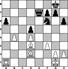 game notation in PGN-format [Event "Bremer Schl"] [Site "www.myChess.de"] [Date "2015.11.01"] [Round "1"] [White "deepsabel"] [Black "Erich"] [ECO "E48"] [WhitemyELO "2057"] [BlackmyELO "2119"] [Result "1/2-1/2"] [TimeControl "10/3456000"] [WhiteDays "154"] [BlackDays "080"] [MyChessNo "100979"] 1. d4 Nf6 2. c4 e6 3. Nc3 Bb4 4. e3 O-O 5. Bd3 d5 6. Nf3 c5 7. O-O b6 8. cxd5 exd5 9. Ne5 Bb7 10. a3 Bxc3 11. bxc3 Nbd7 12. Nxd7 Qxd7 13. a4 Bc6 14. f3 Rfe8 15. Qc2 Qd6 16. Qf2 h6 17. a5 Qd7 18. Re1 Bb5 19. Bc2 Rac8 20. Bd2 cxd4 21. exd4 bxa5 22. Rxa5 Rxe1+ 23. Qxe1 a6 24. Qb1 Qc7 25. Ra1 Rb8 26. Qb4 Bd3 27. Bxd3 Rxb4 28. cxb4 Qa7 29. Bc3 Qe7 30. Bd2 1/2-1/2 position notation in FEN-format 6k1/4qpp1/p4n1p/3p4/1P1P4/3B1P2/3B2PP/R5K1 - - - 4 30 Captured white pieces: Captured black pieces: Click on a captured piece in order to display the desired move!