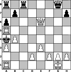 game notation in PGN-format [Event "Mailüfterl"] [Site "www.myChess.de"] [Date "2018.04.23"] [Round "1"] [White "Steffi"] [Black "miu"] [ECO "E21"] [WhitemyELO "1562"] [BlackmyELO "1543"] [Result "1-0"] [TimeControl "10/1728000"] [WhiteDays "30"] [BlackDays "59"] [MyChessNo "112042"] 1. d4 Nf6 2. c4 e6 3. Nc3 Bb4 4. Nf3 d5 5. Bg5 c5 6. dxc5 Nc6 7. e3 Qa5 8. Bxf6 gxf6 9. Qc2 Qxc5 10. a3 Bxc3+ 11. Qxc3 Ke7 12. Bd3 dxc4 13. Bxc4 a6 14. b4 Qb6 15. Ng5 Ne5 16. O-O Bd7 17. Ne4 Rhc8 18. Nc5 Nxc4 19. Rfd1 Nd6 20. Nxd7 Qd8 21. Qxf6+ Kxd7 22. Qxf7+ Kc6 23. Qxe6 Kb5 24. Rxd6 Qg8 25. Rd5+ Ka4 26. Ra5# 1-0 position notation in FEN-format r1r3q1/1p5p/p3Q3/R7/kP6/P3P3/3P1PPP/R5K1 - - - 4 26 Captured white pieces: Captured black pieces: Click on a captured piece in order to display the desired move!