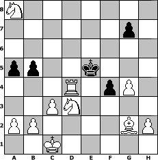 game notation in PGN-format [Event "Zug um Zug gegen Fr"] [Site "www.myChess.de"] [Date "2011.04.02"] [Round "1"] [White "reisender"] [Black "babikar"] [ECO "A41"] [WhitemyELO "1340"] [BlackmyELO "1303"] [Result "1-0"] [TimeControl "10/2592000"] [WhiteDays "88"] [BlackDays "71"] [MyChessNo "73158"] 1. d4 d6 2. e4 b6 3. f3 h6 4. Be3 e6 5. Nc3 f5 6. Qd2 d5 7. exf5 exf5 8. O-O-O Be7 9. Bd3 Ba6 10. Bxf5 Bg5 11. Bxg5 Qxg5 12. Qxg5 hxg5 13. Nh3 Ne7 14. Rde1 Rf8 15. Nxd5 Kd8 16. Nxe7 Re8 17. Nd5 Nc6 18. Rxe8+ Kxe8 19. Nxc7+ Kd8 20. Nxa8 Nxd4 21. Rd1 Ke7 22. Rxd4 Kf6 23. g4 Bf1 24. Nf2 Bg2 25. Be4 Ke5 26. c3 b5 27. f4+ gxf4 28. Bxg2 a5 29. Nd3+ 1-0 position notation in FEN-format N7/6p1/8/pp2k3/3R1pP1/2PN4/PP4BP/2K5 - - - 1 29 Captured white pieces: Captured black pieces: Click on a captured piece in order to display the desired move!