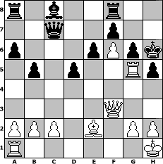 | game notation in PGN-format [Event "Zug um Zug gegen Fr"] [Site "www.myChess.de"] [Date "2010.05.04"] [Round "1"] [White "Caligula"] [Black "Seneca"] [ECO "B08"] [WhitemyELO "1360"] [BlackmyELO "1546"] [Result "1-0"] [TimeControl "10/2592000"] [WhiteDays "90"] [BlackDays "83"] [MyChessNo "65351"] 1. e4 d6 2. d4 Nf6 3. Nc3 g6 4. Nf3 Bg7 5. Bc4 a6 6. O-O b5 7. Bd3 O-O 8. Re1 e6 9. Bg5 Qe8 10. Qd2 c6 11. e5 dxe5 12. dxe5 Nd5 13. Nxd5 cxd5 14. Bf6 Nd7 15. Qf4 Nxf6 16. exf6 Bh8 17. Ne5 Qd8 18. Ng4 h5 19. Ne5 Qxf6 20. Qe3 Kh7 21. f4 Qe7 22. Qf3 Bxe5 23. Rxe5 Kg7 24. f5 Qc5+ 25. Kh1 Qc7 26. f6+ Kh7 27. Rg5 Kh6 28. Be2 1-0 position notation in FEN-format r1b2r2/2q2p2/p3pPpk/1p1p2Rp/8/5Q2/PPP1B1PP/R6K - - - 4 28 Captured white pieces:                              Captured black pieces:                               Click on a captured piece in order to display the desired move!