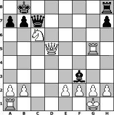 game notation in PGN-format [Event "Dabei ist alles 3"] [Site "www.myChess.de"] [Date "2008.05.14"] [Round "1"] [White "ujack1961"] [Black "brucybabe"] [ECO "B20"] [WhitemyELO "1693"] [BlackmyELO "1614"] [Result "1-0"] [TimeControl "10/864000"] [WhiteDays "10"] [BlackDays "10"] [MyChessNo "44855"] 1. e4 c5 2. Bc4 Nc6 3. Nf3 e6 4. O-O d6 5. c3 Nf6 6. Re1 Be7 7. d4 cxd4 8. cxd4 Nxe4 9. Rxe4 d5 10. Rg4 dxc4 11. Rxg7 Bf6 12. Bg5 Bxg5 13. Rxg5 Qb6 14. Na3 Bd7 15. Nxc4 Qc7 16. d5 exd5 17. Qxd5 O-O-O 18. Nd6+ Kb8 19. Nxf7 Bg4 20. Nxd8 Bxf3 21. Nxc6+ 1-0 position notation in FEN-format 1k5r/ppq4p/2N5/3Q2R1/8/5b2/PP2PPPP/R5K1 - - - 0 21 Captured white pieces: Captured black pieces: Click on a captured piece in order to display the desired move!