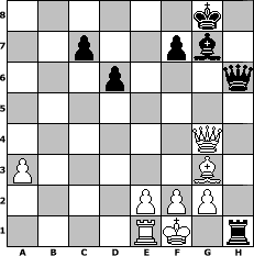 game notation in PGN-format [Event "Neujahrsturnier 2016"] [Site "www.myChess.de"] [Date "2015.12.17"] [Round "1"] [White "Grubengeist"] [Black "muetoe"] [ECO "C84"] [WhitemyELO "1954"] [BlackmyELO "1905"] [Result "1/2-1/2"] [TimeControl "10/2592000"] [WhiteDays "105"] [BlackDays "107"] [MyChessNo "101640"] 1. e4 e5 2. Nf3 Nc6 3. Bb5 a6 4. Ba4 Nf6 5. O-O Be7 6. d4 exd4 7. Re1 b5 8. e5 Nxe5 9. Nxe5 bxa4 10. Qxd4 Rb8 11. Nc3 O-O 12. a3 Re8 13. Bg5 h6 14. Bh4 Rb6 15. Qxa4 g5 16. Bg3 Rxb2 17. h4 Bf8 18. hxg5 hxg5 19. Nf3 d6 20. Nxg5 Bb7 21. Nce4 Bxe4 22. Nxe4 Nxe4 23. Rxe4 Rxe4 24. Qxe4 Qf6 25. Rd1 Qg6 26. Qc4 Rxc2 27. Qxa6 Rc5 28. Re1 Rh5 29. Qc8 Qh6 30. Qg4+ Bg7 31. Kf1 Rh1+ 1/2-1/2 position notation in FEN-format 6k1/2p2pb1/3p3q/8/6Q1/P5B1/4PPP1/4RK1r - - - 9 32 Captured white pieces: Captured black pieces: Click on a captured piece in order to display the desired move!