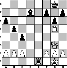 game notation in PGN-format [Event "Februar 2018"] [Site "www.myChess.de"] [Date "2018.02.03"] [Round "1"] [White "muellerh"] [Black "Steffi"] [ECO "C65"] [WhitemyELO "1479"] [BlackmyELO "1504"] [Result "0-1"] [TimeControl "10/1728000"] [WhiteDays "53"] [BlackDays "51"] [MyChessNo "111282"] 1. e4 e5 2. Nf3 Nc6 3. Bb5 Nf6 4. Nc3 d6 5. d4 exd4 6. Nxd4 Bd7 7. O-O Be7 8. Bg5 O-O 9. Re1 Nxd4 10. Qxd4 c6 11. Bc4 c5 12. Qd3 a6 13. e5 dxe5 14. Rxe5 b5 15. Bd5 c4 16. Qe3 Nxd5 17. Nxd5 Bxg5 18. Rxg5 Re8 19. Qg3 g6 20. Nc7 Qe7 21. Nxe8 Rxe8 22. Kf1 Qe2+ 23. Kg1 Qe1+ 24. Rxe1 Rxe1# 0-1 position notation in FEN-format 6k1/3b1p1p/p5p1/1p4R1/2p5/6Q1/PPP2PPP/4r1K1 - - - 0 25 Captured white pieces: Captured black pieces: Click on a captured piece in order to display the desired move!