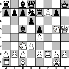 game notation in PGN-format [Event "Sommerturnier myElo 1500 und niedriger"] [Site "www.myChess.de"] [Date "2009.08.07"] [Round "1"] [White "alpacino"] [Black "Hobbykegler"] [ECO "C42"] [WhitemyELO "1322"] [BlackmyELO "1083"] [Result "1-0"] [TimeControl "10/3456000"] [WhiteDays "76"] [BlackDays "78"] [MyChessNo "58101"] 1. e4 e5 2. Nf3 Nf6 3. Nc3 Bc5 4. Bc4 O-O 5. O-O d6 6. d3 Ng4 7. Ng5 Nxf2 8. Rxf2 Re8 9. Bxf7+ Kh8 10. Nxh7 Re7 11. Ng5 Nd7 12. Qh5# 1-0 position notation in FEN-format r1bq3k/pppnrBp1/3p4/2b1p1NQ/4P3/2NP4/PPP1PRPP/R1B3K1 - - - 4 12 Captured white pieces: Captured black pieces: Click on a captured piece in order to display the desired move!