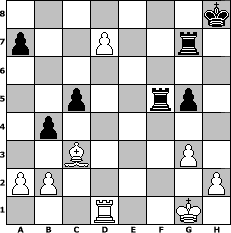 game notation in PGN-format [Event "BENONI"] [Site "www.myChess.de"] [Date "2005.06.20"] [Round "1"] [White "Basal"] [Black "bjeu"] [ECO "A65"] [WhitemyELO "1843"] [BlackmyELO "2025"] [Result "1-0"] [TimeControl "10/864000"] [WhiteDays "10"] [BlackDays "10"] [MyChessNo "14208"] 1. d4 Nf6 2. c4 c5 3. d5 e6 4. Nc3 exd5 5. cxd5 d6 6. e4 Be7 7. Be2 O-O 8. f4 Nfd7 9. Nf3 Bh4+ 10. Nxh4 Qxh4+ 11. g3 Qe7 12. O-O Nf6 13. Re1 Bh3 14. e5 dxe5 15. d6 Qd7 16. fxe5 Ng4 17. Bf4 Qf5 18. Bc4 Kh8 19. e6 fxe6 20. Bxe6 Qg6 21. Nd5 Qh5 22. Re5 Qg6 23. Ne7 Qe8 24. Bxg4 Bxg4 25. Qxg4 Nd7 26. Nf5 Qg6 27. Qxg6 hxg6 28. Re7 Rxf5 29. Rxd7 g5 30. Bd2 b5 31. Bc3 Rg8 32. Rd1 b4 33. Rxg7 Rxg7 34. d7 1-0 position notation in FEN-format 7k/p2P2r1/8/2p2rp1/1p6/2B3P1/PP5P/3R2K1 - - - 0 34 Captured white pieces: ![]() ![]() ![]() ![]() ![]() ![]() ![]() ![]() ![]() ![]() ![]() ![]() ![]() ![]() ![]() Captured black pieces: ![]() ![]() ![]() ![]() ![]() ![]() ![]() ![]() ![]() ![]() ![]() ![]() ![]() ![]() ![]() Click on a captured piece in order to display the desired move!