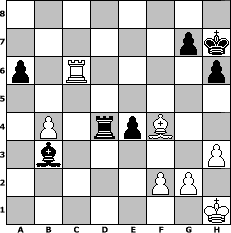 game notation in PGN-format [Event "II. Intergalaktische Meisterschaft"] [Site "www.myChess.de"] [Date "2008.09.08"] [Round "1"] [White "HenrySchinasky"] [Black "muetoe"] [ECO "C89"] [WhitemyELO "2019"] [BlackmyELO "1881"] [Result "1/2-1/2"] [TimeControl "10/2592000"] [WhiteDays "30"] [BlackDays "30"] [MyChessNo "47852"] 1. e4 e5 2. Nf3 Nc6 3. Bb5 a6 4. Ba4 Nf6 5. O-O Be7 6. Re1 b5 7. Bb3 O-O 8. c3 d6 9. h3 Na5 10. Bc2 c5 11. d4 Qc7 12. Nbd2 cxd4 13. cxd4 Bb7 14. Nf1 Rac8 15. Re2 d5 16. Nxe5 dxe4 17. Ng3 Rfd8 18. Nf5 Bd6 19. Nxd6 Qxd6 20. Be3 h6 21. Qd2 Nc6 22. Nxc6 Rxc6 23. Ree1 Rc4 24. Rec1 Rcc8 25. a4 Bc6 26. axb5 Bxb5 27. Bb3 Qd7 28. Ba2 Nd5 29. b4 Rxc1+ 30. Rxc1 Bc6 31. Rc5 Kh7 32. Qe1 Bb7 33. Qb1 f5 34. Bxd5 Bxd5 35. Bf4 Qa4 36. Be5 Rd7 37. Kh1 Qb3 38. Qxb3 Bxb3 39. Rc6 f4 40. Bxf4 Rxd4 1/2-1/2 position notation in FEN-format 8/6pk/p1R4p/8/1P1rpB2/1b5P/5PP1/7K - - - 0 41 Captured white pieces: Captured black pieces: Click on a captured piece in order to display the desired move!