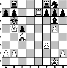 game notation in PGN-format [Event "Loyal to the Game"] [Site "www.myChess.de"] [Date "2005.12.23"] [Round "1"] [White "hermtz"] [Black "Biber"] [ECO "D20"] [WhitemyELO "1456"] [BlackmyELO "1267"] [Result "1-0"] [TimeControl "10/864000"] [WhiteDays "08"] [BlackDays "08"] [MyChessNo "21040"] 1. d4 d5 2. c4 dxc4 3. e3 Bf5 4. Nc3 Be6 5. d5 Bd7 6. Bxc4 Nf6 7. Nf3 Bg4 8. Qa4+ Nbd7 9. Ne5 Bh5 10. d6 exd6 11. Nxd7 Nxd7 12. O-O Be7 13. Bd2 Bf6 14. Rab1 Rf8 15. Ne4 Ke7 16. Nxf6 Nxf6 17. f3 Qd7 18. Qb3 Rab8 19. e4 c5 20. e5 dxe5 21. Rfe1 Qxd2 22. Rxe5+ Kd8 23. Rd1 Qxd1+ 24. Qxd1+ Kc7 25. Re7+ Kc6 26. g4 Bg6 27. g5 Ng8 28. Qd7+ Kb6 29. Qb5# 1-0 position notation in FEN-format 1r3rn1/pp2Rppp/1k4b1/1Qp3P1/2B5/5P2/PP5P/6K1 - - - 4 29 Captured white pieces: Captured black pieces: Click on a captured piece in order to display the desired move!