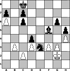 game notation in PGN-format [Event "Adventszeit"] [Site "www.myChess.de"] [Date "2022.11.28"] [Round "1"] [White "borsti"] [Black "skuehnel"] [ECO "C41"] [WhitemyELO "1402"] [BlackmyELO "1242"] [Result "0-1"] [TimeControl "10/1728000"] [WhiteDays "20"] [BlackDays "15"] [MyChessNo "128257"] 1. e4 e5 2. Nf3 d6 3. h3 f5 4. exf5 Bxf5 5. Bc4 Nf6 6. d3 d5 7. Bb3 Nc6 8. Ba4 d4 9. Nxe5 Qd5 10. Nxc6 bxc6 11. Na3 Qa5+ 12. Bd2 Qxa4 13. O-O Bxa3 14. b3 Qb5 15. Re1+ Be7 16. Bf4 Nd5 17. Bg3 O-O-O 18. a4 Qb4 19. Qf3 Rhf8 20. Qh5 g6 21. Qd1 Bg5 22. Re5 Rfe8 23. Qf3 Rxe5 24. Bxe5 Re8 25. Bg3 Re1+ 26. Rxe1 Qxe1+ 27. Kh2 h5 28. h4 Bf6 29. a5 Be5 30. Bxe5 Qxe5+ 31. g3 Qe1 32. a6 Qf1 33. Qg2 Qe2 34. f3 Qxg2+ 35. Kxg2 Ne3+ 0-1 position notation in FEN-format 2k5/p1p5/P1p3p1/5b1p/3p3P/1P1PnPP1/2P3K1/8 - - - 1 36 Captured white pieces: Captured black pieces: Click on a captured piece in order to display the desired move!