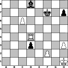 game notation in PGN-format [Event "unter uns 59 (IAdvent, Advent...)"] [Site "www.myChess.de"] [Date "2025.12.04"] [Round "1"] [White "faustballer"] [Black "Lohl"] [ECO "A01"] [WhitemyELO "1464"] [BlackmyELO "1275"] [Result "1-0"] [TimeControl "10/864000"] [WhiteDays "50"] [BlackDays "50"] [MyChessNo "134034"] 1. b3 e5 2. Bb2 Nc6 3. h3 d5 4. e3 Nf6 5. Bb5 Bd7 6. Nf3 a6 7. Bxc6 Bxc6 8. Nxe5 Bb5 9. a4 Bd7 10. Nc3 Bd6 11. Nxd7 Qxd7 12. Qf3 c6 13. Ne2 O-O 14. Bxf6 gxf6 15. Qxf6 Qe6 16. Qxe6 fxe6 17. O-O Rae8 18. c3 Re7 19. Nd4 e5 20. Nf3 e4 21. Nd4 c5 22. Nc2 Rg7 23. Ne1 Be5 24. Rc1 b5 25. axb5 axb5 26. d3 exd3 27. Nxd3 Bd6 28. c4 bxc4 29. bxc4 d4 30. exd4 cxd4 31. c5 Bc7 32. c6 Rc8 33. Rc4 Rd8 34. Nc5 Rg6 35. Nd3 Rg7 36. g3 Bxg3 37. Kh1 Bc7 38. Rg1 Kh8 39. Rxg7 Kxg7 40. Nc5 d3 41. Ne6+ Kf7 42. Nxd8+ Bxd8 43. Rd4 1-0 position notation in FEN-format 3b4/5k1p/2P5/8/3R4/3p3P/5P2/7K - - - 1 43 Captured white pieces: Captured black pieces: Click on a captured piece in order to display the desired move!