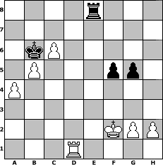 game notation in PGN-format [Event "und immer wieder Schach !"] [Site "www.myChess.de"] [Date "2009.11.06"] [Round "1"] [White "Joschi"] [Black "Andreas"] [ECO "C61"] [WhitemyELO "1562"] [BlackmyELO "1519"] [Result "1-0"] [TimeControl "10/864000"] [WhiteDays "40"] [BlackDays "40"] [MyChessNo "60418"] 1. e4 e5 2. Nf3 Nc6 3. Bb5 Nd4 4. Nxd4 exd4 5. d3 a5 6. a4 c6 7. Bc4 Bb4+ 8. Bd2 Qg5 9. O-O Bxd2 10. Nxd2 d5 11. f4 Qd8 12. exd5 cxd5 13. Re1+ Ne7 14. Bb5+ Bd7 15. Bxd7+ Qxd7 16. Nf3 O-O 17. Nxd4 Nc6 18. Nxc6 bxc6 19. b3 Qd6 20. Qf3 Qc5+ 21. Qf2 d4 22. Re5 Qc3 23. Re1 f6 24. Re4 c5 25. Re7 Rf7 26. Re4 h6 27. R1e2 Qa1+ 28. Qe1 Qxe1+ 29. Rxe1 Rc7 30. Re8+ Rxe8 31. Rxe8+ Kf7 32. Ra8 c4 33. dxc4 Rc5 34. Rd8 Ke6 35. Rxd4 g5 36. fxg5 hxg5 37. c3 f5 38. b4 axb4 39. cxb4 Rc8 40. c5 Ke5 41. Rc4 Kd5 42. Rc1 Ra8 43. c6 Kd6 44. b5 Kc7 45. Ra1 Kb6 46. Kf2 Re8 47. Rd1 1-0 position notation in FEN-format 4r3/8/1kP5/1P3pp1/P7/8/5KPP/3R4 - - - 6 47 Captured white pieces: Captured black pieces: Click on a captured piece in order to display the desired move!