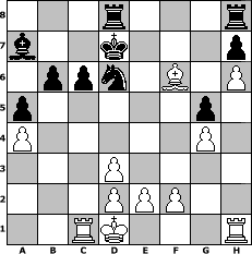 game notation in PGN-format [Event "5. HK-960-Pokal"] [Site "www.myChess.de"] [Date "2012.09.11"] [Round "2"] [White "ChristinaH"] [Black "pepo47"] [Variant "Fischerrandom"] [SetUp "1"] [FEN "rbbknnqr/pppppppp/8/8/8/8/PPPPPPPP/RBBKNNQR w KQkq - 0 1"] [WhitemyELO "1522"] [BlackmyELO "2073"] [Result "0-1"] [TimeControl "10/1728000"] [WhiteDays "19"] [BlackDays "20"] [MyChessNo "83866"] 1. b4 d5 2. a4 Nd6 3. Ba2 e6 4. Ne3 Ng6 5. Nd3 f6 6. Bb2 a5 7. b5 Ba7 8. g4 Qf8 9. h4 Bd7 10. h5 Ne7 11. Qg2 O-O-O 12. h6 g5 13. Qf3 e5 14. Nxd5 e4 15. b6 cxb6 16. Qxf6 Nxd5 17. Bxd5 Qxf6 18. Bxf6 exd3 19. cxd3 Bc6 20. Bxc6 bxc6 21. Rc1 Kd7 0-1 position notation in FEN-format 3r3r/b2k3p/1ppn1B1P/p5p1/P5P1/3P4/3PPP2/2RK3R - K - 2 22 Captured white pieces: Captured black pieces: Click on a captured piece in order to display the desired move!