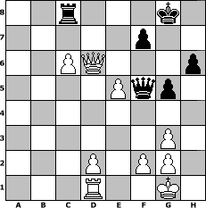game notation in PGN-format [Event "101 Geburtstag von Miguel Najdorf"] [Site "www.myChess.de"] [Date "2011.04.15"] [Round "1"] [White "deepsabel"] [Black "neve"] [ECO "?"] [WhitemyELO "1964"] [BlackmyELO "1432"] [Result "1-0"] [TimeControl "10/1728000"] [WhiteDays "80"] [BlackDays "00"] [MyChessNo "73319"] 1. d4 Nf6 2. c4 e6 3. Nc3 d5 4. Bg5 Be7 5. e3 c6 6. Nf3 O-O 7. Rc1 Nbd7 8. Bd3 h6 9. Bh4 Bd6 10. O-O Re8 11. Re1 e5 12. cxd5 exd4 13. exd4 g5 14. dxc6 bxc6 15. Bg3 Bxg3 16. hxg3 Rxe1+ 17. Qxe1 Bb7 18. Ne5 Qe7 19. Ne4 Nxe5 20. Nxf6+ Qxf6 21. dxe5 Qg7 22. Qc3 Qf8 23. Be4 Rb8 24. b4 Qc8 25. a3 Qe6 26. Bxc6 Rc8 27. b5 a6 28. a4 axb5 29. axb5 Rc7 30. Qd4 Rc8 31. Qd6 Qf5 32. Rd1 Bxc6 33. bxc6 1-0 position notation in FEN-format 2r3k1/5p2/2PQ3p/4Pqp1/8/6P1/3P1PP1/3R2K1 - - - 0 33 Captured white pieces: Captured black pieces: Click on a captured piece in order to display the desired move!
