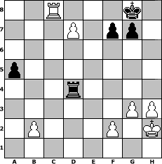 game notation in PGN-format [Event "Sommerloch"] [Site "www.myChess.de"] [Date "2016.07.24"] [Round "2"] [White "Joschi"] [Black "hape50"] [ECO "C41"] [WhitemyELO "1552"] [BlackmyELO "1283"] [Result "1-0"] [TimeControl "10/2592000"] [WhiteDays "150"] [BlackDays "148"] [MyChessNo "104283"] 1. e4 e5 2. Nf3 d6 3. Bc4 h6 4. O-O Nf6 5. Re1 Be7 6. d4 exd4 7. Nxd4 a6 8. Nc3 c5 9. Nf3 Nc6 10. Nd5 b5 11. Nxf6+ Bxf6 12. Bd5 Qb6 13. Rb1 Ra7 14. Bf4 O-O 15. Bxd6 Rd8 16. Bg3 Bg4 17. h3 Bh5 18. Qe2 Nb4 19. c4 Rad7 20. a3 Nxd5 21. cxd5 c4 22. Qe3 Qb7 23. Bf4 Bxf3 24. Qxf3 Re8 25. Bxh6 Rd6 26. Bf4 Rdd8 27. e5 Be7 28. Rbd1 b4 29. axb4 Bxb4 30. Re2 a5 31. Bg5 Rc8 32. Qg4 Be7 33. Bxe7 Rxe7 34. d6 Re6 35. Rd4 Rg6 36. Qe4 Qb5 37. Rc2 Re6 38. Rdxc4 Rce8 39. Rc8 Rxe5 40. Rxe8+ Rxe8 41. Qc6 Re1+ 42. Kh2 Qe5+ 43. g3 Qe4 44. Qxe4 Rxe4 45. d7 Rd4 46. Rc8+ 1-0 position notation in FEN-format 2R3k1/3P1pp1/8/p7/3r4/6PP/1P3P1K/8 - - - 2 46 Captured white pieces: Captured black pieces: Click on a captured piece in order to display the desired move!