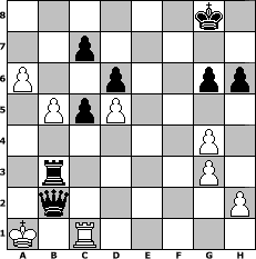 game notation in PGN-format [Event "Turnier f"] [Site "www.myChess.de"] [Date "2008.08.21"] [Round "1"] [White "commander"] [Black "Knight"] [ECO "A45"] [WhitemyELO "1185"] [BlackmyELO "1208"] [Result "0-1"] [TimeControl "10/2592000"] [WhiteDays "087"] [BlackDays "114"] [MyChessNo "47294"] 1. d4 Nf6 2. d5 d6 3. f3 e5 4. e4 g6 5. Bg5 Bg7 6. c4 O-O 7. b4 h6 8. Bxf6 Bxf6 9. b5 b6 10. a4 Bb7 11. Nd2 a6 12. Nb3 axb5 13. cxb5 Nd7 14. Qd2 Bg5 15. Qf2 Nc5 16. Nxc5 bxc5 17. a5 f5 18. a6 Bc8 19. Rb1 fxe4 20. Be2 e3 21. Qf1 Bf5 22. Bc4 Bxb1 23. Ke2 Bf5 24. Qc1 Qf6 25. g3 Bg4 26. fxg4 Qf2+ 27. Kd3 e4+ 28. Kxe4 Rae8+ 29. Kd3 e2 30. Nxe2 Rf3+ 31. Kc2 Rxe2+ 32. Bxe2 Qxe2+ 33. Kb1 Rb3+ 34. Ka1 Bxc1 35. Rxc1 Qb2# 0-1 position notation in FEN-format 6k1/2p5/P2p2pp/1PpP4/6P1/1r4P1/1q5P/K1R5 - - - 1 36 Captured white pieces: ![]() ![]() ![]() ![]() ![]() ![]() ![]() ![]() ![]() ![]() ![]() ![]() ![]() ![]() ![]() Captured black pieces: ![]() ![]() ![]() ![]() ![]() ![]() ![]() ![]() ![]() ![]() ![]() ![]() ![]() ![]() ![]() Click on a captured piece in order to display the desired move!