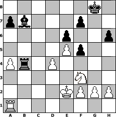 game notation in PGN-format [Event "Abtausch Variante"] [Site "www.myChess.de"] [Date "2007.02.05"] [Round "1"] [White "Mike"] [Black "LeeBrilleaux"] [ECO "D35"] [WhitemyELO "1453"] [BlackmyELO "1472"] [Result "1/2-1/2"] [TimeControl "10/1728000"] [WhiteDays "11"] [BlackDays "59"] [MyChessNo "32296"] 1. d4 d5 2. c4 e6 3. Nc3 Nf6 4. cxd5 Nxd5 5. e4 Nf6 6. Bg5 Nc6 7. Nf3 h6 8. Bxf6 Qxf6 9. Bb5 Bb4 10. Qa4 O-O 11. Bxc6 Bxc3+ 12. bxc3 bxc6 13. Qxc6 Rb8 14. Qxc7 Rb7 15. Qe5 Rb2 16. Qxf6 gxf6 17. O-O Rc2 18. Rfc1 Re2 19. e5 f5 20. Kf1 Ba6 21. c4 Rb2 22. Ke1 Rc8 23. Rc3 Bxc4 24. Nd2 Ba6 25. Rxc8+ Bxc8 26. a4 Rb4 27. Nf3 Bb7 28. Ke2 1/2-1/2 position notation in FEN-format 6k1/pb3p2/4p2p/4Pp2/Pr1P4/5N2/4KPPP/R7 - - - 4 28 Captured white pieces: Captured black pieces: Click on a captured piece in order to display the desired move!