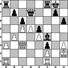 game notation in PGN-format [Event "Einfach nur Schach 4"] [Site "www.myChess.de"] [Date "2024.01.26"] [Round "2"] [White "Campino1986"] [Black "peter58"] [ECO "C60"] [WhitemyELO "1477"] [BlackmyELO "1534"] [Result "0-1"] [TimeControl "10/864000"] [WhiteDays "08"] [BlackDays "29"] [MyChessNo "131474"] 1. e4 e5 2. Nf3 Nc6 3. Bb5 Nge7 4. Bxc6 Nxc6 5. O-O Bc5 6. d3 Be7 7. Nc3 O-O 8. Be3 d6 9. a3 Be6 10. h3 Qd7 11. Ne2 h6 12. c4 f5 13. Qd2 f4 14. Bxa7 Rxa7 15. b4 Nd8 16. Kh2 Nf7 17. Nc3 Ng5 18. Nxg5 Bxg5 19. Nb5 Raa8 20. d4 c6 21. d5 Bxh3 22. Nxd6 Qxd6 23. gxh3 f3 24. c5 Qd7 25. Qc3 Bf4+ 0-1 position notation in FEN-format r4rk1/1p1q2p1/2p4p/2PPp3/1P2Pb2/P1Q2p1P/5P1K/R4R2 - - - 3 26 Captured white pieces: Captured black pieces: Click on a captured piece in order to display the desired move!