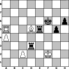 game notation in PGN-format [Event "Karnevalsstress"] [Site "www.myChess.de"] [Date "2009.02.15"] [Round "1"] [White "bane"] [Black "Gambitianer"] [ECO "A20"] [WhitemyELO "1802"] [BlackmyELO "1866"] [Result "0-1"] [TimeControl "10/1728000"] [WhiteDays "101"] [BlackDays "070"] [MyChessNo "52773"] 1. c4 e5 2. e4 Nf6 3. Nc3 Bc5 4. Qf3 Nc6 5. g3 d6 6. h3 Nd4 7. Qd1 c6 8. Bg2 Be6 9. d3 a6 10. Bd2 O-O 11. Nf3 b5 12. b3 Qb6 13. O-O h6 14. Kh2 a5 15. Rb1 Nh7 16. Ne1 Ra7 17. f4 f5 18. Nf3 Raf7 19. Nh4 exf4 20. gxf4 fxe4 21. dxe4 Re8 22. f5 Bd7 23. cxb5 cxb5 24. Nd5 Qd8 25. Ng6 Bc6 26. Ngf4 Bxd5 27. Nxd5 Nf6 28. Nxf6+ Qxf6 29. Rc1 Bb6 30. a4 bxa4 31. bxa4 d5 32. Be3 dxe4 33. Kh1 Ba7 34. Qh5 Bb8 35. Rcd1 Nxf5 36. Rxf5 Qxf5 37. Qxf5 Rxf5 38. Kg1 g5 39. Rc1 Bf4 40. Kf2 Rd5 41. Rc4 Bxe3+ 42. Kxe3 Rd3+ 43. Ke2 Rg3 44. Kf2 Rb3 45. Bxe4 Rxh3 46. Bd5+ Kg7 47. Rc7+ Kf6 48. Ra7 Re5 49. Rxa5 Rd3 0-1 position notation in FEN-format 8/8/5k1p/R2Br1p1/P7/3r4/2P2K2/8 - - - 1 50 Captured white pieces: Captured black pieces: Click on a captured piece in order to display the desired move!