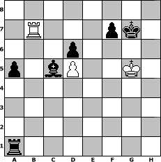 game notation in PGN-format [Event "Sommerturnier f"] [Site "www.myChess.de"] [Date "2009.08.14"] [Round "1"] [White "Steppenwolf"] [Black "leitsgeheier"] [ECO "C77"] [WhitemyELO "1143"] [BlackmyELO "1500"] [Result "0-1"] [TimeControl "10/1728000"] [WhiteDays "20"] [BlackDays "20"] [MyChessNo "58332"] 1. e4 e5 2. Nf3 Nc6 3. Bb5 a6 4. Ba4 Nf6 5. Nc3 Bc5 6. d3 b5 7. Bb3 O-O 8. Bg5 h6 9. Bh4 g5 10. Bg3 Re8 11. O-O Bb7 12. Re1 Nh5 13. Nd5 Nxg3 14. hxg3 a5 15. a4 b4 16. Qd2 Nd4 17. Nxd4 Bxd4 18. c3 bxc3 19. bxc3 Bc5 20. Kf1 Bf8 21. d4 c6 22. Rab1 cxd5 23. Bxd5 Bxd5 24. exd5 exd4 25. Qxd4 Bg7 26. Rxe8+ Qxe8 27. Qd2 Qe5 28. c4 Qd4 29. Qxd4 Bxd4 30. Rb7 d6 31. Ke2 Re8+ 32. Kf3 Bc5 33. Kg4 Kg7 34. f4 Re4 35. Kh5 gxf4 36. gxf4 Rxf4 37. g3 Rxc4 38. g4 Rxa4 39. g5 hxg5 40. Kxg5 Ra1 0-1 position notation in FEN-format 8/1R3pk1/3p4/p1bP2K1/8/8/8/r7 - - - 1 41 Captured white pieces: Captured black pieces: Click on a captured piece in order to display the desired move!