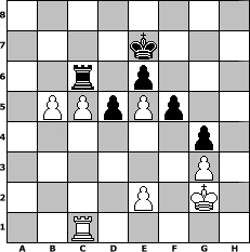 game notation in PGN-format [Event "Sommer 2025"] [Site "www.myChess.de"] [Date "2025.05.13"] [Round "1"] [White "skuehnel"] [Black "Alencar"] [ECO "B30"] [WhitemyELO "1362"] [BlackmyELO "1409"] [Result "1-0"] [TimeControl "10/2592000"] [WhiteDays "98"] [BlackDays "45"] [MyChessNo "133369"] 1. e4 c5 2. Nf3 Nc6 3. Bc4 g6 4. O-O Bg7 5. d3 Nd4 6. Be3 Nxf3+ 7. Qxf3 e6 8. c3 Qf6 9. Nd2 Qxf3 10. Nxf3 Ne7 11. Bxc5 b6 12. Be3 f5 13. Bg5 a5 14. d4 Ba6 15. Bxa6 Rxa6 16. e5 h6 17. Bxe7 Kxe7 18. Nh4 Kf7 19. f4 g5 20. fxg5 hxg5 21. Nf3 g4 22. Ng5+ Ke7 23. b3 Bh6 24. h4 Bxg5 25. hxg5 Rg8 26. g3 d5 27. c4 Rxg5 28. c5 bxc5 29. dxc5 Rc6 30. Rac1 Rh5 31. Kg2 Rh3 32. Rh1 Rxh1 33. Kxh1 Kf7 34. Kg2 Kg6 35. a3 Kf7 36. b4 axb4 37. axb4 Ke7 38. b5 1-0 position notation in FEN-format 8/4k3/2r1p3/1PPpPp2/6p1/6P1/4P1K1/2R5 - - - 0 38 Captured white pieces: Captured black pieces: Click on a captured piece in order to display the desired move!