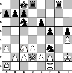 game notation in PGN-format [Event "Sp"] [Site "www.myChess.de"] [Date "2011.09.07"] [Round "1"] [White "Seneca"] [Black "morchel"] [ECO "C00"] [WhitemyELO "1516"] [BlackmyELO "1446"] [Result "0-1"] [TimeControl "10/1728000"] [WhiteDays "18"] [BlackDays "16"] [MyChessNo "76193"] 1. e4 e6 2. Nf3 d5 3. Bb5+ Bd7 4. Bxd7+ Qxd7 5. exd5 Qxd5 6. O-O Nc6 7. d3 Nf6 8. Nc3 Qd7 9. a3 Be7 10. h3 h6 11. Bf4 g5 12. Bh2 g4 13. hxg4 Nxg4 14. Bg3 h5 15. Bh4 O-O-O 16. g3 f5 17. Bxe7 Qxe7 18. Nh4 Rhg8 19. Qd2 Nge5 20. Kh2 Qxh4+ 21. gxh4 Nf3+ 0-1 position notation in FEN-format 2kr2r1/ppp5/2n1p3/5p1p/7P/P1NP1n2/1PPQPP1K/R4R2 - - - 1 22 Captured white pieces: Captured black pieces: Click on a captured piece in order to display the desired move!